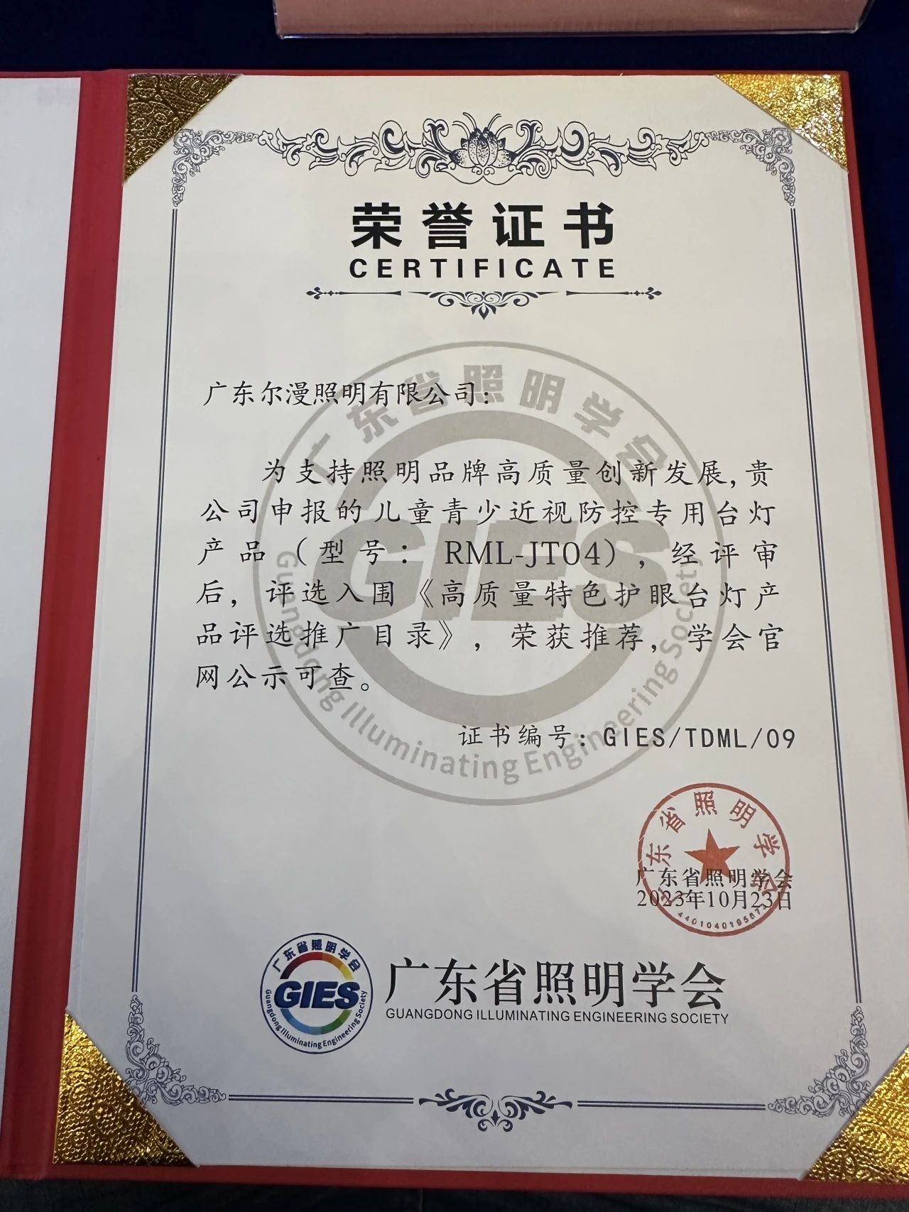 尔漫护眼台灯荣获《高质量护眼台灯产品评选推广名录》