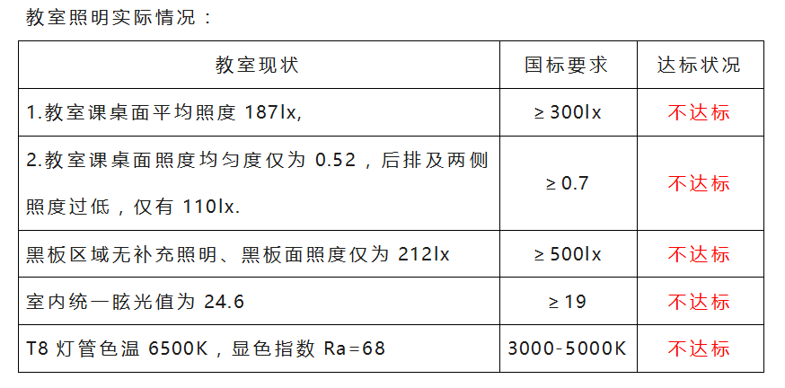 教室照明实施情况: