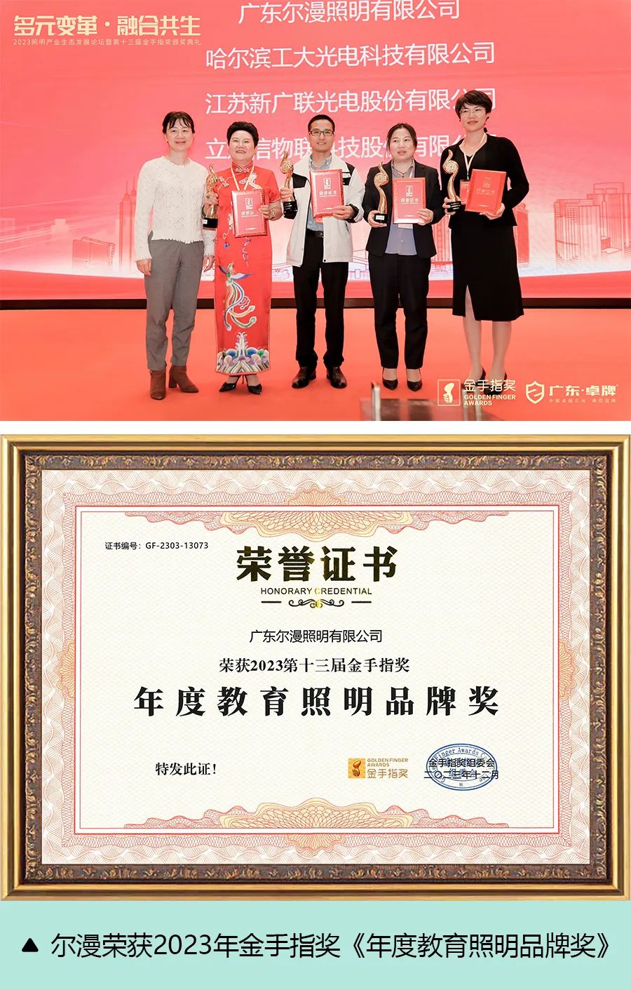 喜讯 | 尔漫照明荣获2023年金手指奖《年度教育照明品牌奖》