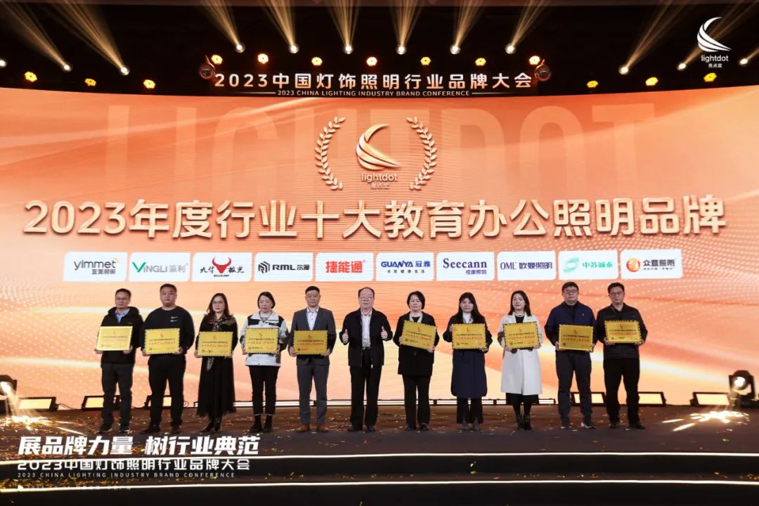 此次大会上,在政府领导、产业专家、优秀厂家、超级经销商、商协会代表及权威媒体代表等重量级嘉宾的见证下,尔漫照明被授予2023年度中国灯饰照明行业“十大教育办公照明品牌”,充分体现公司在核心技术水平、创新能力、市场地位、发展前景等方面获得了市场的高度认可。