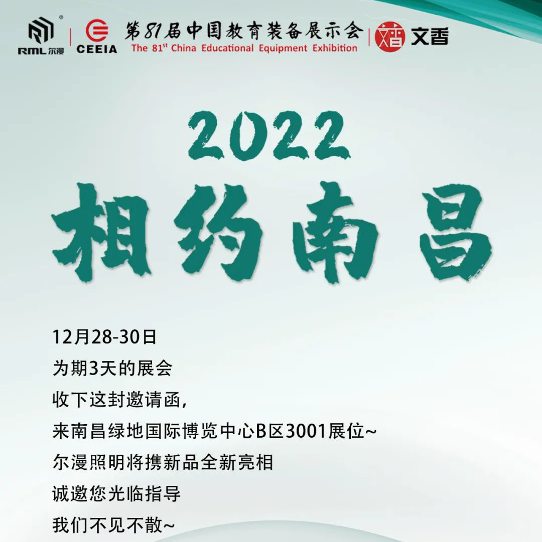 2022中国教育装备展即将于12月28日拉开帷幕为期三天的展会新品全新亮相、含金量超足!您怎能错过如此盛典?收下这封邀请函,南昌绿地国际博览中心B区3001展位~诚邀您光临品鉴我们...